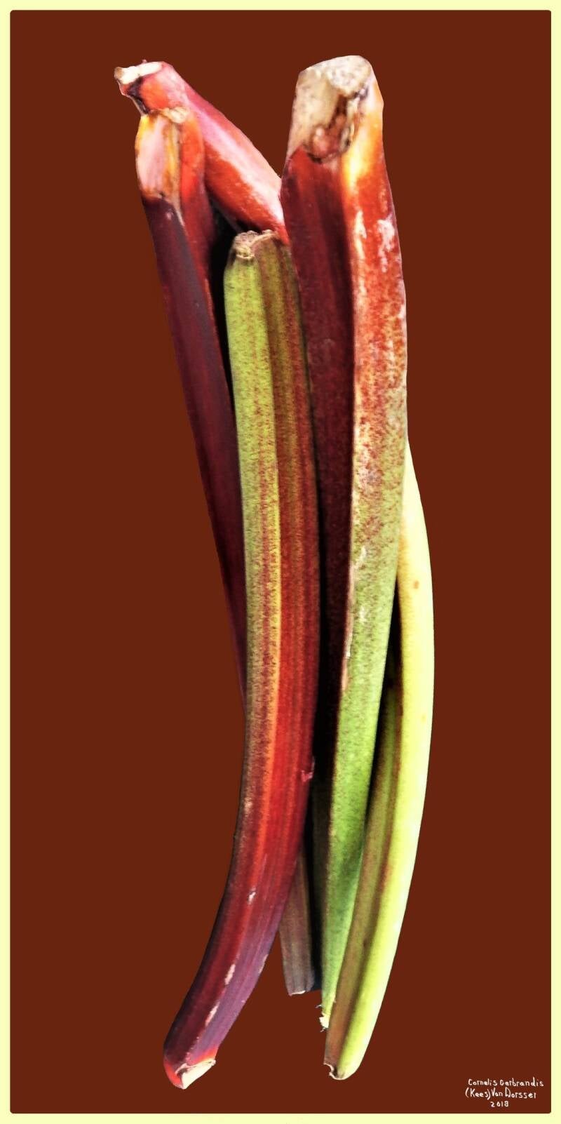 Dit kunstwerk van Kees van Dorsser toont een bos snijbiet tegen een donkere achtergrond. De levendige kleuren en textuur van de snijbiet worden benadrukt door de belichting en compositie, waardoor de frisheid en schoonheid van de groente naar voren komen. De naam van de kunstenaar, staat rechtsonder in de afbeelding te zien.